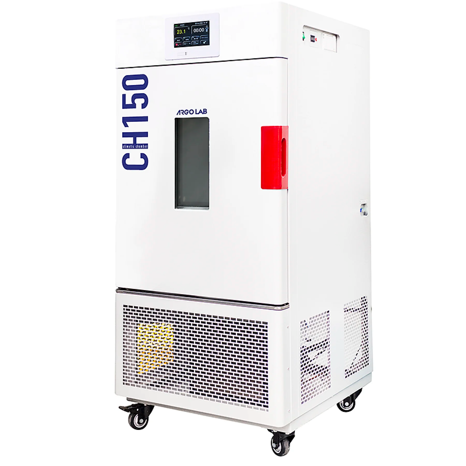 CH 150 cámara climática de 150 lt de volumen. Rango 0°... 85°C, 10°... 70°C. 40 a 95% HR. Pantalla táctil de 7" Gestión de Usuarios, Gráficos, Controlador digital con programas, impresora. Clase de seguridad 3.1.